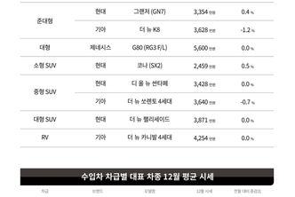 [오토모닝 정영창 기자] 올 연말에는 유가 오름세가 이어지면서 대형 중고차 구매 접근성이 확대될 것으로 보인다. 국내 최대 직영중고차 플랫폼 기업 K Car(케이카)는 국내 중고차 시장에서 유통되는 출시 10년 이내 740여개 모델을 대상으로 평균 시세를 분석한 결과, 대형차 시세는 전월 대비 1.1% 하락할 것으로 보이는 반면 경차는 1% 상승할 것으로 27일 전망했다. 한국석유공사 유가정보시스템 오피넷에 따르면 최근 휘발유와 경유의 주간 평균 가격은 4주 연속 상승했다. 이에 따라 유지비가 높은 것으로 인식되는 대형 세단들의 구매 접근성이 높아진 것으로 보인다. 제네시스 G90 RS4(-1.8%), G80 RG3(-1.3%), 기아 더 K9(-1.8%) 등이 큰 하락폭을 보였다. 반면, 연비 효율성이 높은 경차는 1% 상승할 것으로 전망된다. 쉐보레 더 넥스트 스파크(1.6%), 기아 더 뉴 모닝(1.5%), 올 뉴 모닝(1.3%) 등이 강세를 보였다. 수입차 시장에서도 대형차급 시세는 0.4% 하락할 것으로 보인다. 역시 렉서스 LS500 5세대(-1.9%), 벤츠 S-클래스 W222(-1.4%), 아우디 A8 D5(-1.3%) 등 고급 세단이 주를 이