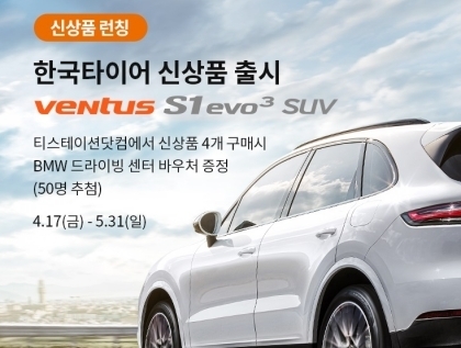 [오토모닝 정영창 기자] 한국타이어앤테크놀로지㈜(이하 한국타이어)의 자동차 토탈 서비스 전문점인 티스테이션(T’Station)이 초고성능 SUV용 타이어 '벤투스 S1 에보3 SUV' 국내 출시를 기념하는 이벤트를 진행한다고 11일 밝혔다. 온·오프라인 연계 서비스 플랫폼 티스테이션닷컴에서 벤투스 S1 에보3 SUV를 4개 구매하고 블로그·페이스북·인스타그램 등 개인 SNS 계정에 후기를 작성한 뒤 티스테이션닷컴에 URL 주소를 남기면 응모가 완료된다. 이벤트 기간은 31일까지다.