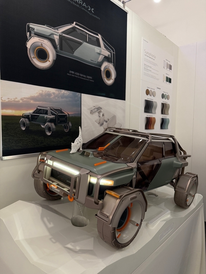 두 번째 작품 ‘TERRA-X’는 SUV 본연의 강인함과 활동성, 확장성을 강화한 모델이다. 안전성을 높이는 차체 구조와 SUV의 미래지향적 디자인 해석을 통해 자유로운 이동성과 확장성을 구현한 것이 특징이다. 여기에 자연에서 영감을 받은 컬러를 적용해 외관을 완성했다. 이번 작품들은 DDP 아트홀 ‘영디자이너 특별관’에서 오는 19일까지 만나볼 수 있다.