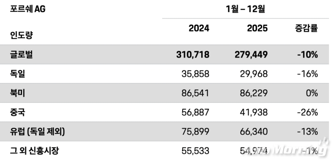 [오토모닝 정영창 기자] 포르쉐는 2025년 글로벌 시장에 완성차 27만9449대를 판매, 전년 대비 10% 감소했다고 19일 밝혔다.