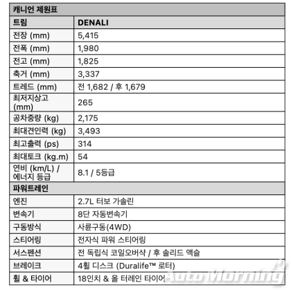 한편, 캐니언은 동급 차종으론 유일하게 제3종 저공해 차량 인증을 획득해, 강력한 퍼포먼스와 트럭 본연의 기능을 유지하면서도 환경적 측면의 경쟁력을 갖춘 픽업으로 차별화된다.