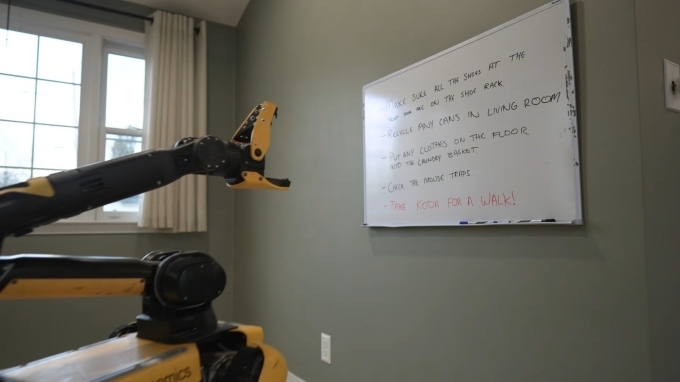 영상에 등장하는 스팟은 탑재된 카메라와 제미나이를 활용해 칠판에 적힌 할 일 목록을 스스로 확인하고 인지한다. 이후 스팟은 명령에 맞춰 현관 앞에 널브러진 신발을 신발장에 정리하고, 빈 캔을 집어 쓰레기통에 넣었다. 또 바닥에 있는 옷들을 집어 세탁 바구니에 넣고, 가구 아래 쥐덫의 상태를 확인하는 등 목록에 있던 활동을 순차적으로 수행한다.