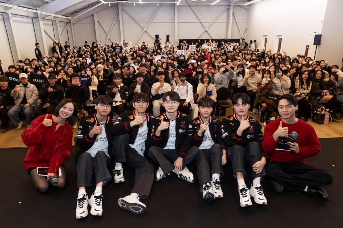 서울시 성동구 복합 문화 공간 ‘Escape Cosy’에서 열린 이번 행사에는 팀 주장인 ‘페이커’ 이상혁을 비롯해, ‘도란’ 최현준, ‘오너’ 문현준, ‘케리아’ 류민석 등 월드 챔피언십 우승을 이끈 기존 T1 소속 선수들과 새롭게 합류한 ‘페이즈’ 김수환 선수가 함께해 자리를 빛냈다.