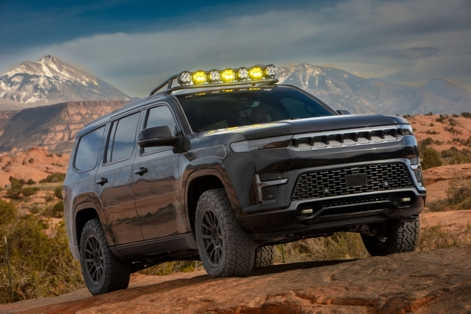 지프 그랜드 왜고니어 커맨더 콘셉트는 풀사이즈 프리미엄 SUV의 고급감과 오프로드 성능을 동시에 갖춘 모델로, 독립적인 주행 성능과 함께 트레일 전용 장비를 견인할 수 있는 능력을 갖췄다.