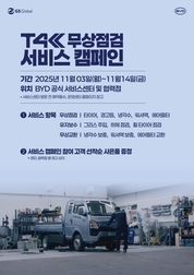 [오토모닝 정영창 기자] GS글로벌이 겨울철을 맞아 BYD 1톤 전기트럭 T4K 고객을 대상으로 ‘고객 감사 서비스 캠페인’을 실시한다. 이번 캠페인은 혹한기 운행이 잦은 고객들의 안전한 주행 환경을 지원하고, 겨울철 차량 주요 부품 점검을 통해 보다 안정적인 전기트럭 운행을 돕기 위해 마련됐다. 이번 무상 서비스 캠페인은 11월3일부터 14일까지 전국 BYD 공식 서비스센터 및 협력점 총 32개소에서 진행된다. 겨울철 기본점검 5가지 및 유지보수 3가지를 중심으로 차량 상태를 점검하고, 일부 소모품은 무상 지원한다. 주요 점검 항목에는 △타이어 마모 및 공기압 △경고등 및 냉각수 상태 △워셔액 및 에어필터 △그리스 주입 및 하체 조임부 점검 등이 포함되며, 무상 보충 및 교환 항목으로는 △냉각수 △워셔액 △에어필터 등이 제공된다. GS글로벌은 이번 캠페인을 통해 겨울철 저온 환경에서도 T4K 차량의 성능과 효율을 안정적으로 유지할 수 있도록 지원할 계획이다. 또한 참여 고객에게는 소정의 사은품이 선착순으로 제공될 예정이다. GS글로벌 모빌리티사업부 관계자는 “T4K 고객들이 겨울철 한파 속에서도 안심하고 운행할 수 있도록 이번 무상 점검 캠페인을 준비했다”