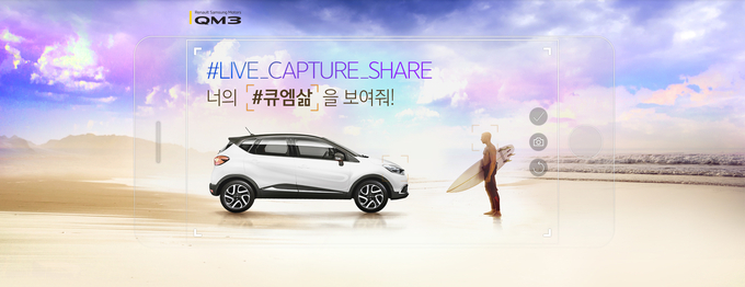 한편 이번 캠페인은 지난 해 QM3 유럽 원정대를 통해 QM3의 유러피안 감성을 생동감 있게 전한 캡처 라이프 캠페인의 후속으로 기획되었으며 경험, 소통, 공감을 중시하는 2030의 참여가 기대된다. 르노삼성자동차는 인스타그램을 통해 응모된 이미지를 QM3 광고에 활용할 계획이다.