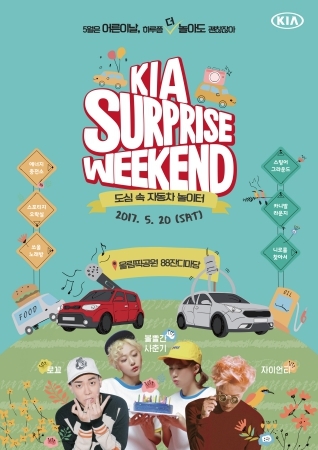 이번 ‘기아 서프라이즈 위크엔드 2017’ 행사는 △서프라이즈 콘서트 △참여형 놀이 프로그램 △감성 프로그램 등 다양한 콘텐츠로 진행된다. 20일 저녁 6시30분부터 1시간 30분 동안 진행되는 서프라이즈 콘서트에는 △볼빨간사춘기 △로꼬 △자이언티 등 대중에게 큰 사랑을 받고 있는 실력파 뮤지션들이 출연해 열기를 더 할 예정이다.