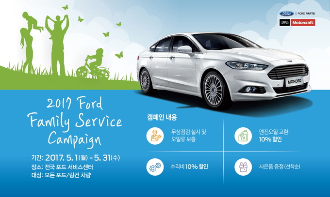 [오토모닝 정영창 기자]포드코리아는 가정의 달을 맞아 ‘포드 패밀리 서비스 캠페인을 5월 한 달간 실시한다고 27일 밝혔다.