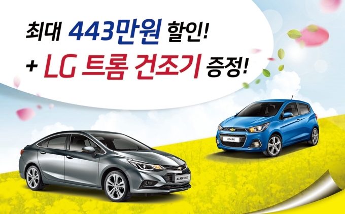 특히 이달 중 스파크, 올란도를 콤보 할부로 구입하면 최대 100만원의 할인 또는 120만원 상당의 신형 LG 트롬 건조기 중 한 가지를 선택할 수 있다.