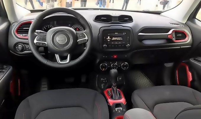 실내는 전반적으로 블랙 색상을 적용하고 레드 컬러 베젤로 액센트를 줬다. 트레일호크 로고가 새겨진 시트, 동반자석 시트 아래 수납공간, 오토/스노우/샌드/머드/락의 5개 주행 모드를 선택할 수 있는 셀렉-터레인 설정 다이얼, 올-웨더 플로어 매트, 230V 전원 아웃릿 등이 적용돼 최강 소형 SUV의 특별함을 더해준다.