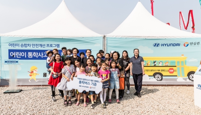 현대차는 28일 경기도 고양시 현대차 메가 페어 전시장에서 현대차와 안실련, 복지기관 관계자 및 어린이와 학부모 약 30명이 참석한 가운데 어린이 통학사고 제로 캠페인에 선정된 복지기관에 스타렉스 통학버스 4대와 쏠라티 통학버스 1대를 기증했다.