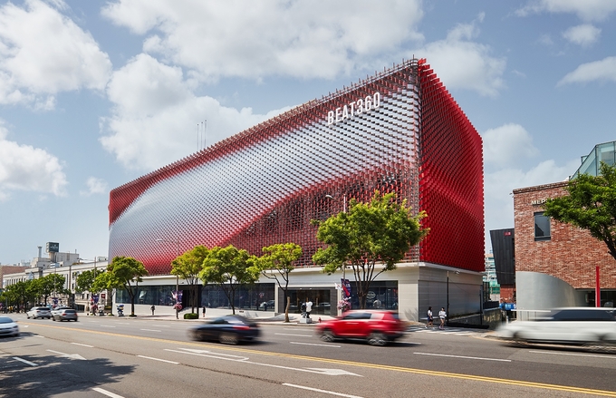 생생한 리듬감과 역동성을 표현하고자 비정형건축물 구현이 가능한 최신 설계기법인 디지털 패브리케이션(Digital Fabrication)을 적용했고, 외벽의 7천553개 모듈을 모두 다른 각도로 조정해 독특하고 입체적인 패턴을 만들어냈다.