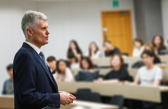 한스-피터 자이츠 대표가 현장 실무경험을 바탕으로 유익하고 알찬 강의를 진행하고 자유로운 분위기로 마련된 질의응답 시간을 통해 학생들로부터 큰 호응을 얻었다.
