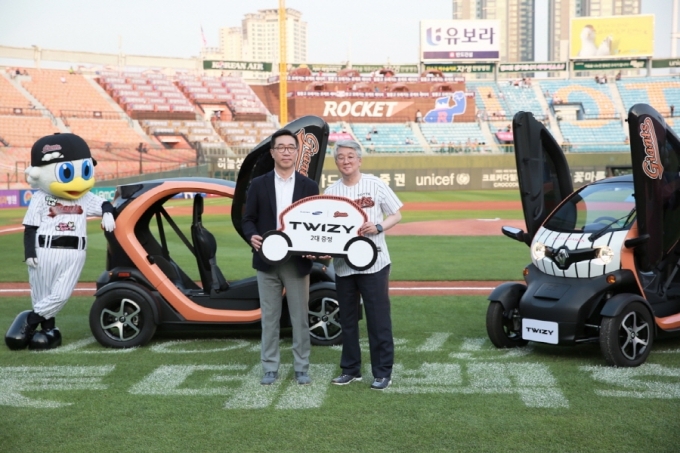 르노삼성차가 롯데자인언츠에 기증하는 트위지 2대는 롯데자이언츠 선수 유니폼과 같은 문양으로 래핑돼 사직구장의 새로운 아이콘이 될 전망이다. 이 차량들은 사직경기장 내 마스코트와 시구자 이동, 잔디 정리 등 경기 진행과 경기장 밖 구단 업무에 사용된다.
