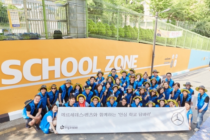 [오토모닝 정영창 기자] 메르세데스-벤츠 사회공헌위원회는 서울 은평구에 위치한 상신 초등학교에서 어린이 교통안전 환경 조성을 위한 ‘안심 학교 담벼락’ 그리기 봉사활동을 진행했다고 19일 밝혔다.