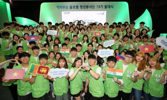 현대차그룹은 28일 서울 계동사옥 대강당에서 박광식 현대자동차 부사장, 한국해비타트, 기아대책, 더나은세상 등 협력기관 대표와 대학생 봉사단원 500명이 참석한 가운데 ‘해피무브 글로벌 청년 봉사단 19기 발대식’을 가졌다.