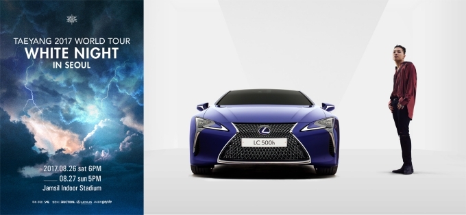 태양은 오는 16일 정규 앨범 '화이트 나이트'(WHITE NIGHT)를 발표하며 서울을 시작으로 전세계 19개 도시에서 월드 투어를 진행할 예정이다. 렉서스 코리아는 서울 콘서트의 공식 스폰서로 참가, 콘서트 현장에서 렉서스의 플래그쉽 쿠페 ‘NEW LC’를 특별 전시한다.