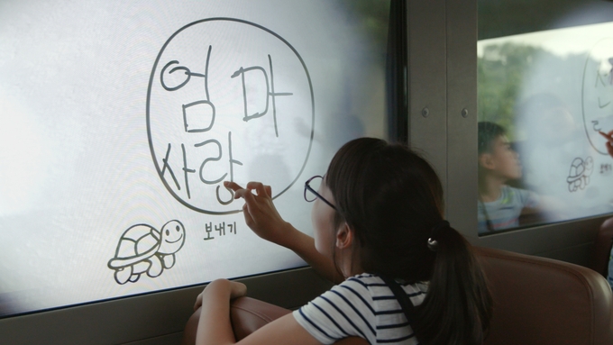 영상 속에서 충주성심학교 어린이들은 ‘스케치북 윈도우’를 통해 손글씨로 다른 좌석의 친구와 소통하고, 부모님 스마트폰에 손 글씨 메시지를 보내는 등 자동차를 통해 다양하게 사회와 소통하는 모습을 보여 주고 있다.