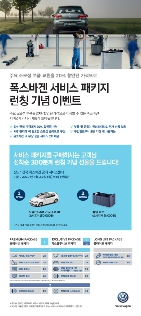 [오토모닝 정영창 기자] 폭스바겐코리아는 차량 유지 관리에 필수적으로 들어가는 소모성 품목을 새롭게 구성한 ‘폭스바겐 서비스 패키지‘를 출시했다고 28일 밝혔다.