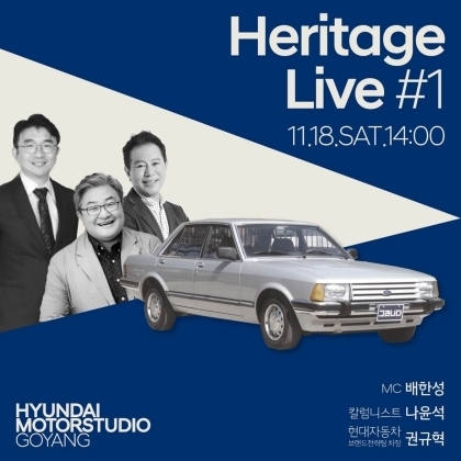 [오토모닝 정영창 기자] 현대자동차는 18일 오후 2시 현대 모터스튜디오 고양 다목적홀에서 토크 콘서트 '헤리티지 라이브'를 진행한다고 2일 밝혔다.