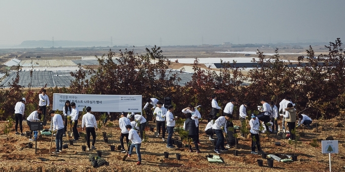이날 참가자들은 미세먼지를 흡수해 없애주는 효능이 있는 느티나무, 맑은 공기를 만드는 효과가 있는 소나무, 그리고 탄소를 흡수하는 상수리나무 등 3종을 식재했다. 2016년부터 시작된 수도권 매립지 내 ‘아이오닉 포레스트’ 조성 사업은 향후에도 순차적으로 식재를 진행, 2020년까지 미세먼지를 막아주는 숲으로 완공될 예정이다.