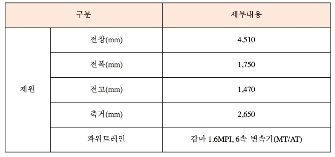 이와 함께 △차체 자세 제어장치(ESC) △신형TPMS(자동차 스스로 타이어 공기압 체크) 등 안전사양을 확대 적용해 안전성을 향상시켰다. 아울러 감마 1.6 MPI 단일 엔진에 6속 MT/AT 변속기를 탑재한 파워트레인으로 부드러운 변속감과 승차감은 물론 동급 최고 수준의 강력한 연비도 갖췄다.