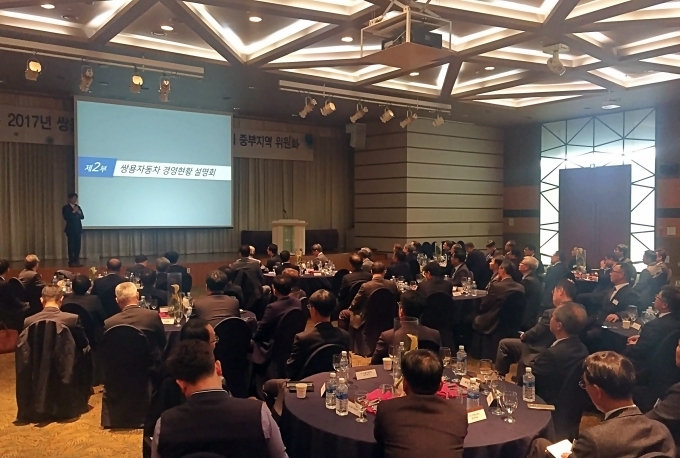지난 14일 수원 호텔 캐슬에서 열린 중부지역 협동회 경영현황 설명회에는 쌍용자동차 최종식 대표이사, 협동회 중부지역부회장 유진레이델 이종숙 대표이사를 비롯한 쌍용자동차 임직원 및 협동회 중부지역위원회 소속 협력사 대표 70여명이 참석했다.