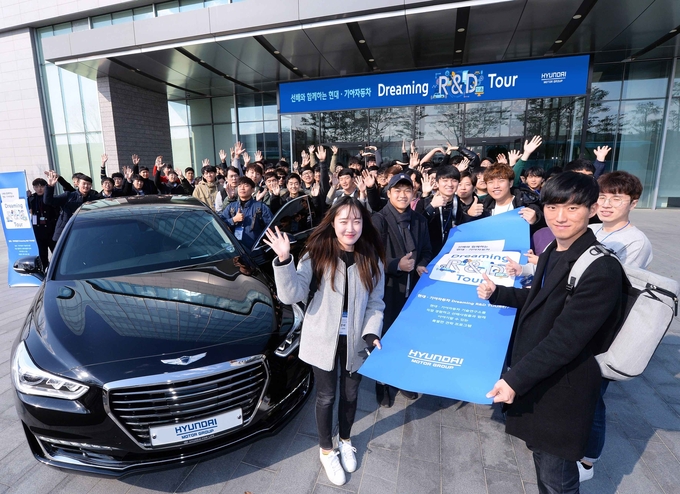 현대기아차 입사를 꿈꾸는 학생들을 위한 행사라는 의미를 담고 있는 ‘드리밍 R&D 투어’는 자동차 산업에 관심이 있는 대학생들에게 자동차 연구개발 시설 견학 기회는 물론, 현업에 있는 선배 연구원들과의 대화 시간을 제공하는 견학 프로그램으로 올해 처음 실시하는 행사다.