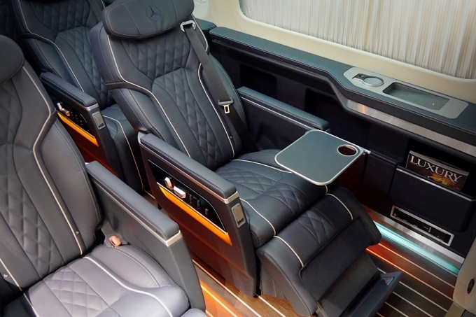 특히 VIP석을 포함한 1열 시트는 3단 레그 서포트가 장착되어 비행기 퍼스트 클라스에 탑승한 것 같은 안락함을 제공하며, 리얼 메탈 소재가 가미된 가죽 인테리어, 피아노 블랙의 우드 트림, 가죽 스티어링 휠, 다양한 컬러와 밝기로 조절이 가능한 파노라마 앰비언트 라이트, 고급형 사운드 시스템 등을 장착해 이동 중 완벽한 휴식공간으로서 기능을 수행한다.