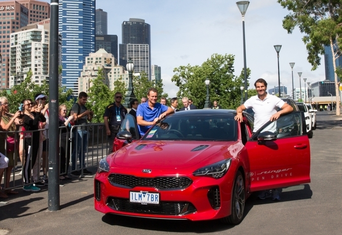 기아차는 10일 호주 빅토리아주에 위치한 멜버른 파크에서 기아차 및 호주오픈 관계자, 기아차 글로벌 홍보대사 라파엘 나달 선수와 호주의 레전드 테니스 선수인 레이튼 휴이트가 참석한 가운데 '2018 호주오픈 대회 공식차량 전달식'을 가졌다.
