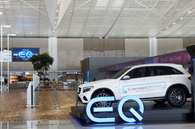 메르세데스-벤츠 코리아는 지난 18일 인천국제공항 제2여객터미널 개항과 함께 첫 EQ 브랜드의 신차인 플러그인 하이브리드 SUV, ‘더 뉴 GLC 350 e 4MATIC’ 두 대를 전시하고, 3층 출국장에 위치한 모든 디지털 스크린에서 브랜드 광고 캠페인을 함께 선보였다.