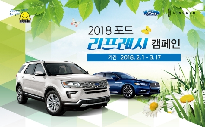 [오토모닝 정영창 기자] 포드코리아는 막바지 겨울과 다가오는 봄철 안전 운행을 위해 ‘2018 리프레시 서비스 캠페인’을 실시한다고 31일 밝혔다.