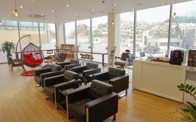 분당 서비스센터는 연면적 1321㎡의 지상 2층 규모로 1층 리셉션 및 경정비 공간, 2층 판금 도장 수리 및 고객라운지로 구성됐다.워크베이 숫자를 기존 6개에서 11개로 확충해, 월 평균 정비 가능 대수도 600대로 늘었다. 고객 라운지는 카페테리아 타입으로 구성해 편안한 분위기를 연출했고, 최대 25대까지 가능한 주차공간을 확보해 방문고객들의 편의성을 높였다.