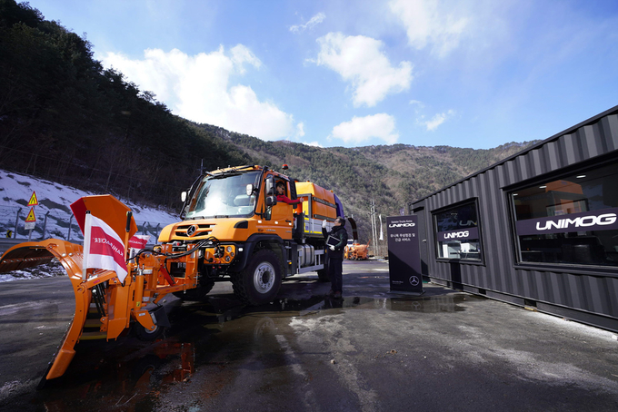 다임러 트럭 코리아는 이번 ‘유니목 특수 제설 트럭 평창 무상 점검’을 통해 폭설이 잦은 강원도 지역에서 보다 안전한 제설 작업 뿐 아니라 만약에 있을지 모르는 폭설 시 인명 구조를 위하여 평창 지역에 모인 전 지역의 유니목들을 점검할 예정이다.