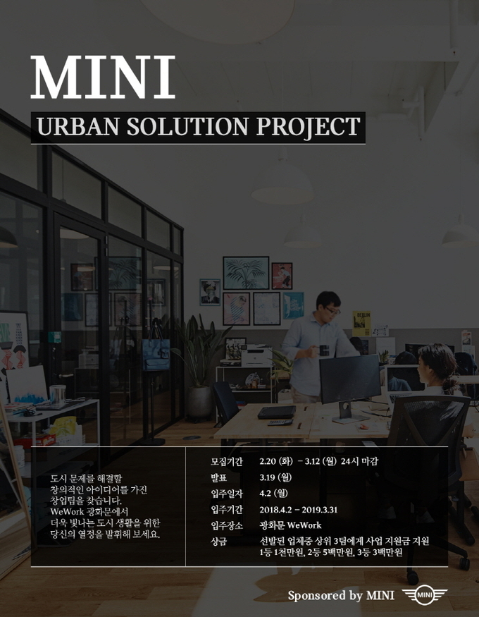 이번 프로젝트는 MINI의 글로벌 캠페인 ‘MINI 어반-X’를 국내 실정에 맞게 재구성한 것으로 현재 미국 브룩클린 등 세계 주요 도시에서 도시의 미래를 그려 나가는 스타트업에 다양한 교육과 투자를 진행 중이다.