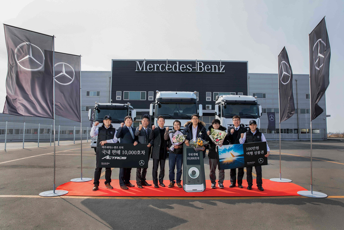메르세데스-벤츠 트럭 10,000호 차량은 독보적인 프리미엄 대형 트랙터의 기준 메르세데스-벤츠 악트로스모델로, 메르세데스-벤츠 악트로스2653 LS를 구입한 이기수 고객에게 전달 되었다. 이 날 출고식에는 다임러 트럭 코리아의 세일즈 총괄 신동우 상무 등 임직원들이 참석한 가운데 10,000호차 출고를 축하했으며 이기수 고객에게 감사의 뜻과 가족 여행 상품권 및 악트로스 순정 컬렉션 모델카 등 기념품을 전달했다.