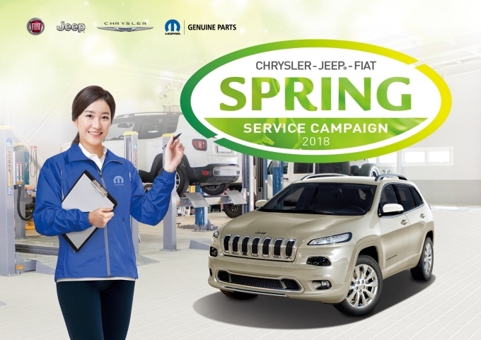 봄 서비스 캠페인은 최첨단 진단 장비 와이텍(wiTECH™)을 이용한 무상 차량 점검 서비스를 비롯하여 모파(MOPAR®) 순정부품 10% 할인, 타이어 10% 할인, 액세서리 및 머천다이즈 20% 할인 등 특별 할인 혜택을 제공한다.