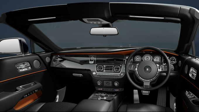 페인트와 래커 층을 겹겹이 쌓은 뒤 손으로 직접 광택을 낸 차체는 깊은 검은색으로 도색되었으며, 소리 없이 열리는 지붕, 가죽으로 감싼 데크는 물론 환희의 여신상과 전면 그릴, 측후면 RR 엠블럼까지 블랙으로 마감해 강렬한 존재감을 드러낸다.