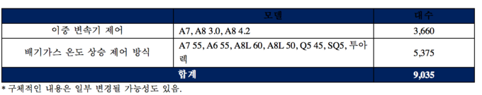 아우디폭스바겐코리아 관계자는 "현재 해당 차량들은 단종되어 더 이상 한국에 수입·판매되고 있지 않으며, 2017년 8월 이후 당사가 새로이 인증을 받아 판매한 차량과는 무관하고 2015년 9월 발생한 배출가스 이슈와도 관계가 없다"고 말했다.