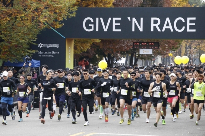 ‘기브 앤 레이스’는 메르세데스-벤츠 코리아가 사회복지법인 아이들과미래재단과 손잡고 소외계층 어린이들을 돕기 위해 마련한 자선 달리기 행사이다. 작년 5월과 11월 진행된 제 1, 2회 대회는 참가 신청이 조기 마감됐으며 누적 참가자 1만2000명, 누적 기부액 7억원을 기록했다.