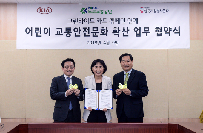 [오토모닝 정영창 기자] 기아자동차는 9일 기아차 곽용선 이사대우, 도로교통공단 박길수 교육본부장, 한국자원봉사문화 정희선 사무총장 등 관계자가 참석한 가운데 어린이 교통안전 문화 확산을 위한 업무협약(MOU)을 체결했다고 밝혔다.