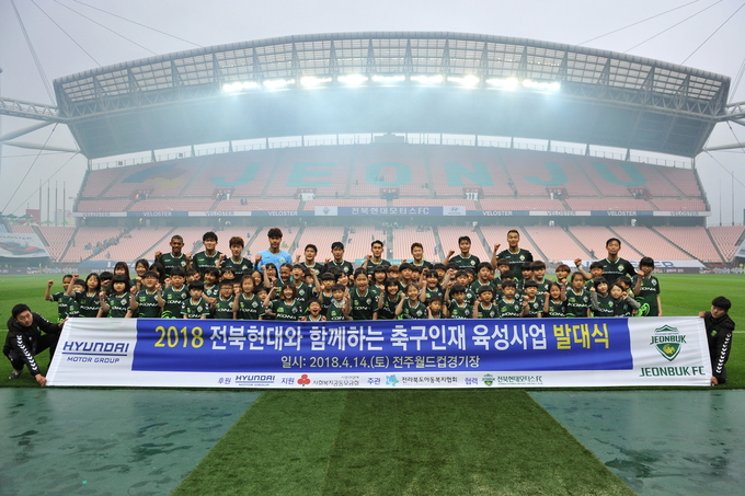 현대차그룹은 지난 14일 전주 월드컵경기장에서 축구 꿈나무로 선발된 아동 60명과 전북현대모터스FC 선수단, 프로그램 관계자 등이 참석한 가운데 ‘전북현대모터스FC와 함께하는 축구인재 육성사업 4기 발대식’을 가졌다고 15일 밝혔다.