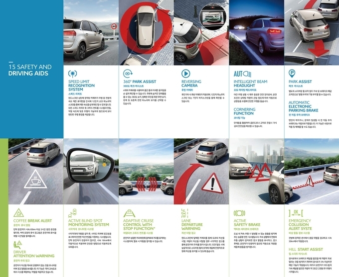 그랜드 C4 스페이스투어러에 탑재된 15가지의 주행 보조 시스템은 보다 편안하고 안전한 주행을 지원한다.