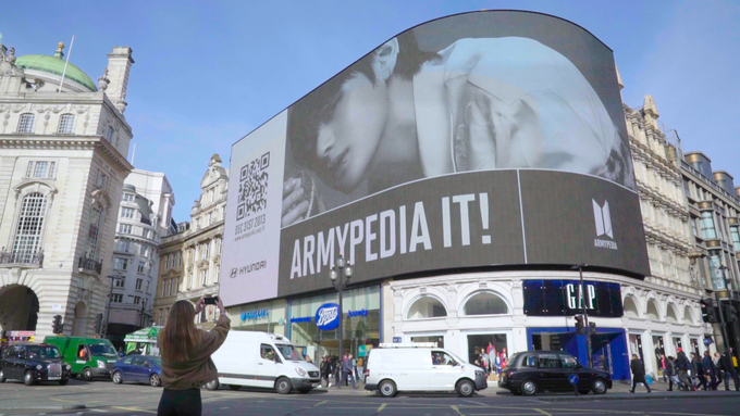 캠페인 티저 영상에는 현장에서 옥외광고를 시청하는 팬들이 바로 ‘아미피디아’에 접속할 수 있는 QR코드와 함께 방탄소년단이 팬들에게 전달하는 메시지를 담았다.