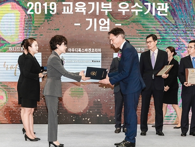 [오토모닝 정영창 기자] 아우디폭스바겐코리아가 미래인재양성을 위한 다양한 사회공헌활동의 공을 인정 받았다.