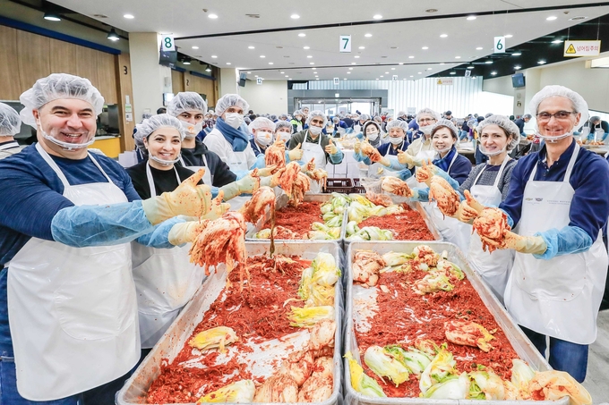 이번 김장김치 나눔 행사에는 한국지엠 카허 카젬 사장, 지엠테크니컬센터코리아 로베르토 렘펠 사장, 한국지엠 협신회 문승 회장을 포함한 협력사 임직원 및 자원봉사자 등 200여 명이 참석해 정성껏 김장김치를 담갔다.