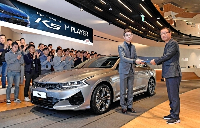 기아자동차는 16일 기아차의 브랜드 체험관인 '비트 360(서울 강남구 소재)'에서 이한응 판매사업부장(상무) 등 회사 임직원들이 참석한 가운데 김동귀 씨의 ‘3세대 K5’ 퍼스트 플레이어 선정 기념 행사를 가졌다.