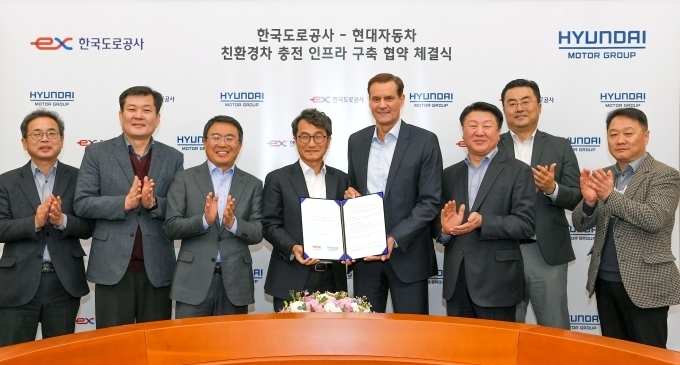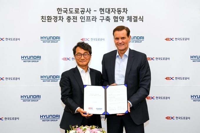 현대차그룹과 한국도로공사가 친환경차 충전 인프라 구축을 위해 협력한다. 현대차그룹과 한국도로공사는 20일 현대·기아차 사옥에서 현대·기아차 토마스 쉬미에라 상품본부장과 한국도로공사 문기봉 기획본부장이 주관하는 가운데 ‘친환경차 충전 인프라 구축 협약’을 체결한다고 밝혔다.