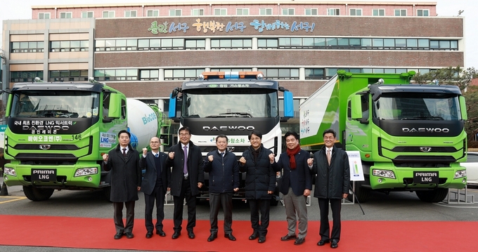 [오토모닝 정영창 기자] 타타대우상용차가 지난 26일 인천광역시 서구청에서 ‘친환경 LNG 청소차 인도식’을 개최하고, LNG 청소차 3대를 인도했다.