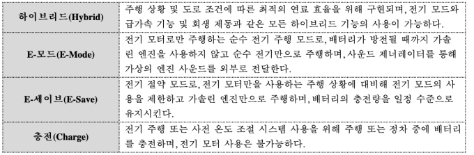 E-세이브 모드로 주행하는 경우, 파워트레인 시스템은 내연 기관을 최소한으로 가동하고 현재의 이동 경로에서 배터리 전력을 최적으로 분배하도록 지원한다. 뿐만 아니라 엔진 작동이 필요할 경우를 진동 신호로 알려주는 햅틱 액셀러레이터 페달(Haptic Accelerator Pedal)이 장착돼 보다 효율적인 주행을 돕는다.